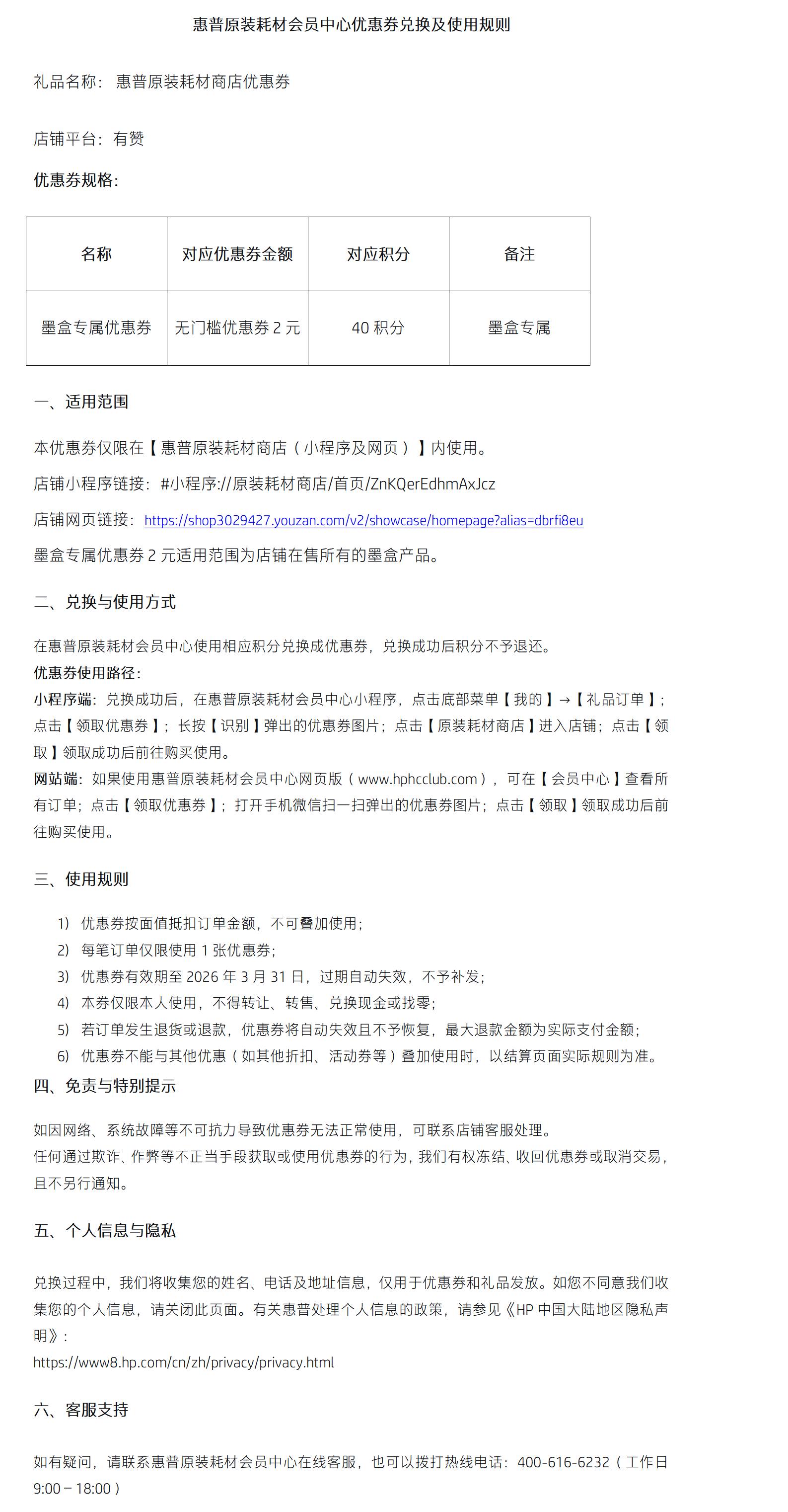 2元墨盒专属无门槛优惠券
