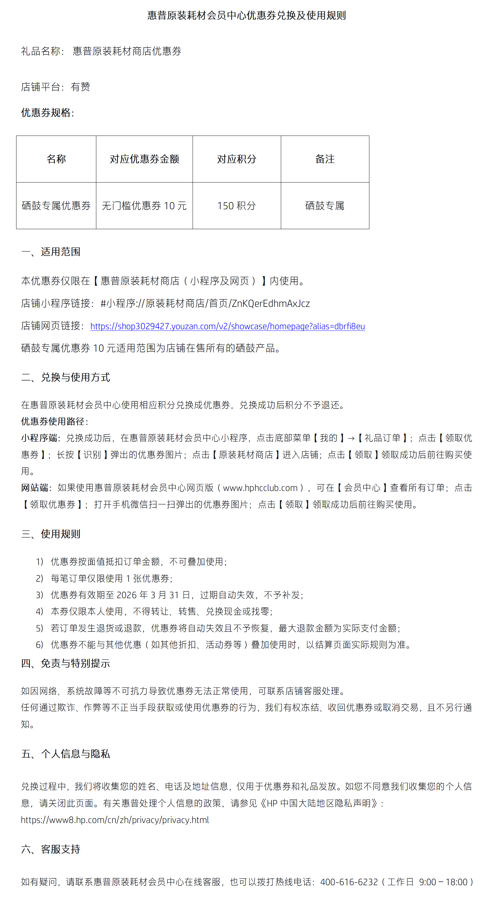 10元硒鼓专属无门槛优惠券