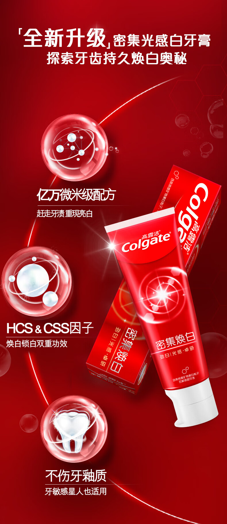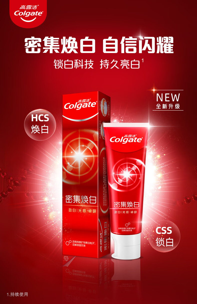 商品名称:高露洁 劲白光感卓研密集焕白 牙膏 120g*2